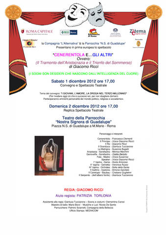 I problemi sociali legati al mondo giovanile raccontati attraverso il Teatro sono stati i protagonisti della Tavola rotonda che i è svolta sabato 1 Dicembre 2012 presso Teatro della Parrocchia “N.S. di Guadalupe” a Monte Mario –Roma.
