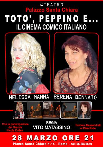 Venerdì 28 marzo 2014, dalle ore 21, il Teatro Santa Chiara a Roma, presterà le sue quinte per una dedica a coloro che, con la loro comicità, hanno dato lustro al teatro ed al cinema italiano. Un format cine-musicale-teatrale per far rivivere Totò e Peppino, Albertone e Sofia. Lanceranno il “file rouge” il regista Vito Matassino, che ha attraversato trent’anni di storia del cinema italiano ed hollywoodiano, insieme con il giornalista e storico del cinema Franco Porcarelli, portando agli occhi degli spettatori documenti e racconti di una comicità che fu, ma che è rimasta indelebile ed incontrastata nella nostra memoria. Come i personaggi femminili, che hanno portato l’immagine di donna italiana nel mondo, interpretati dalla bravissima ed esplosiva Melissa Manna, attrice partenopea che ci dona il cuore di Napoli, e l’instancabile ricerca artistica della preziosa Serena Bennato, la quale ha percorso anni di cinema e teatro che rimarranno nella storia e vissuto personalmente l’esaltante esperienza di lavorare nella compagnia dei fratelli De Filippo. La Bennato,insieme ad altri artisti, proporrà delle poesie scritte dai grandi del periodo. Ed in una serata così potrebbe mai mancare la musica? Le note saranno affidate a Romolo Alessandrelli, compositore e docente all’Accademia di Siena e a Roma, che intermezzerà, con i tasti del suo pianoforte, i momenti documentaristici dagli shetch teatrali e le proiezioni cinematografiche dalla recitazione poetica in un ritorno al passato storico, culturale e comico che ormai non c’è più ma che, ancora oggi ci esprime e ci identifica. Una serata per rivivere posti e pensieri, persone e personaggi, passato e presente, parole e pentagrammi.