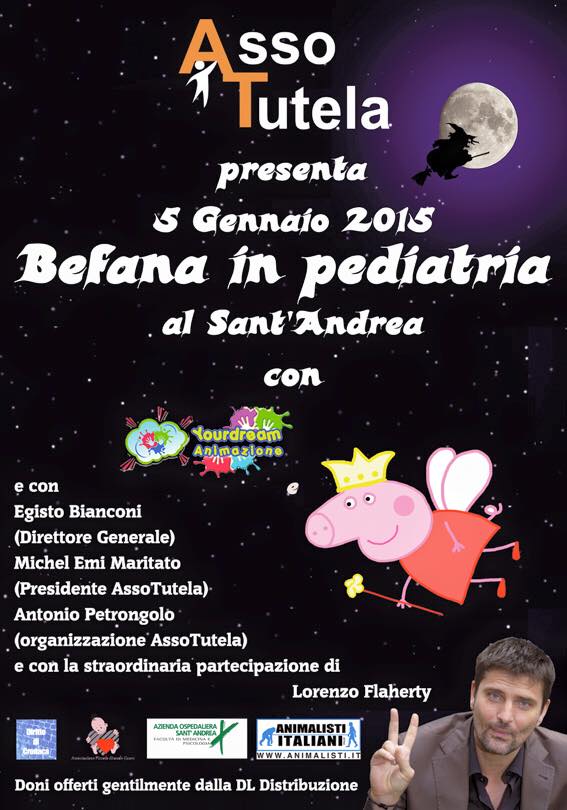 Il 5 Gennaio l’associazione AssoTutela, in collaborazione con il direttore generale dell’ospedale Sant’Andrea Egisto Bianconi, l’Avvocato di AssoTutela Antonio Petrongolo e la ‘Yourdream animazione‘, presenta l’evento “Befana in pediatria al Sant’Andrea”, con la partecipazione speciale dell’attore Lorenzo Flaherty.