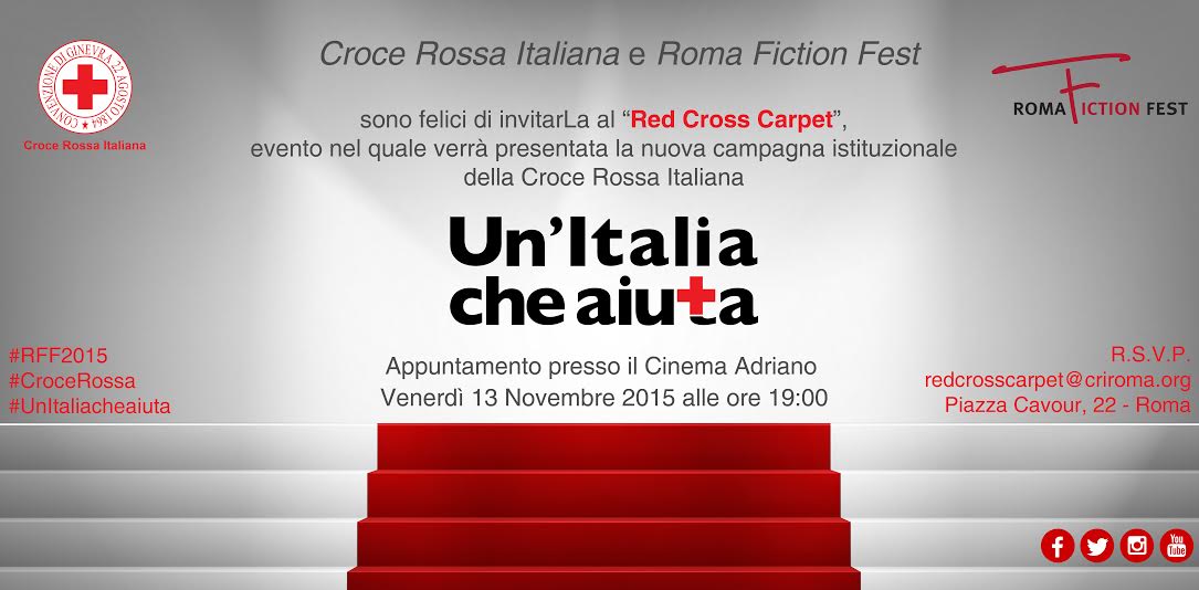 Il red carpet del RomaFictionFest apre le porte ad una delle più grandi associazioni di volontariato, la Croce Rossa Italiana. Venerdì 13 novembre a partire dalle ore 18.30 al Cinema Adriano ci sarà la serata interamente dedicata alla presentazione della campagna istituzionale di CRI “Un’Italia che aiuta“. Una campagna di comunicazione che viaggerà, per ora, on line con due spot che saranno presentati in anteprima nel corso della serata e lanciati in rete con un tweet al Presidente del Consiglio Matteo Renzi.