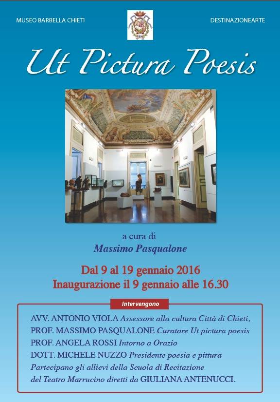 “La mostra “Ut pictura poesis“, il movimento nato all’interno dell’Irdi-destinazionearte si trasferisce dal 9 gennaio, con inaugurazione alle 16.30, presso il Museo Barbella di Chieti.