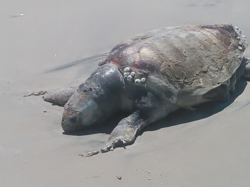 Una tartaruga gigante lunga più di un metro e larga 50 centimetri, spiaggiata morta da già alcuni giorni, é stata trovata sull’arenile di Torre Rinalda nei pressi del lido Kalù, in provincia di Lecce.