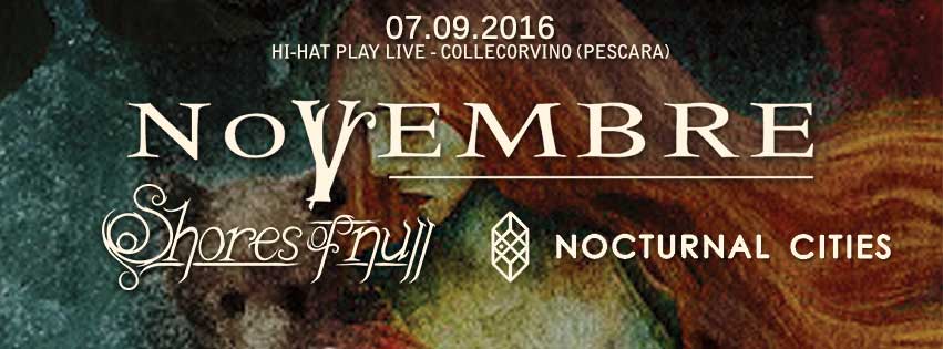 Prima dei Novembre si esibiranno anche gli Shores of Null, che hanno esordito con “Quiescence” per l’inglese Candlelight Records (Emperor, Opeth, Orange Goblin) nel marzo del 2014.