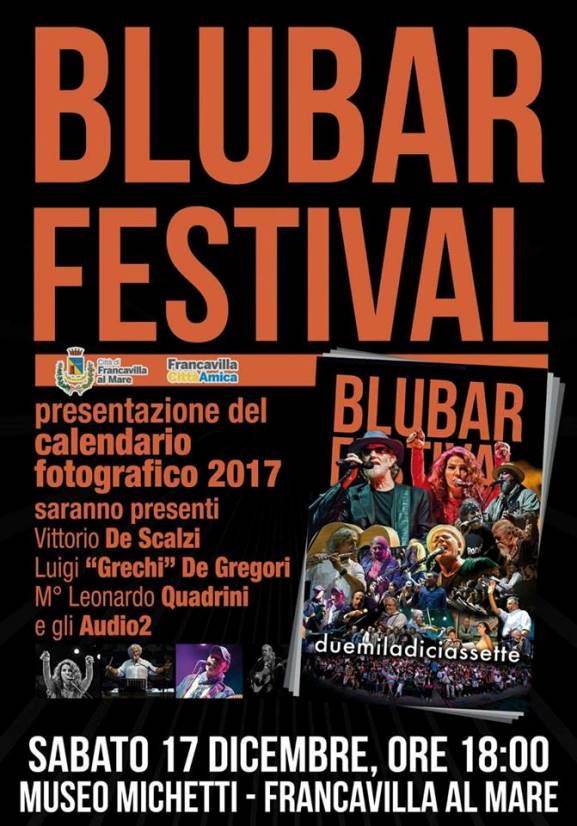 La serata del 17 dicembre si aprirà con la presentazione del calendario fotografico BluBar Festival 2017 realizzato con le migliori foto scattate sul palco durante la passata edizione estiva.