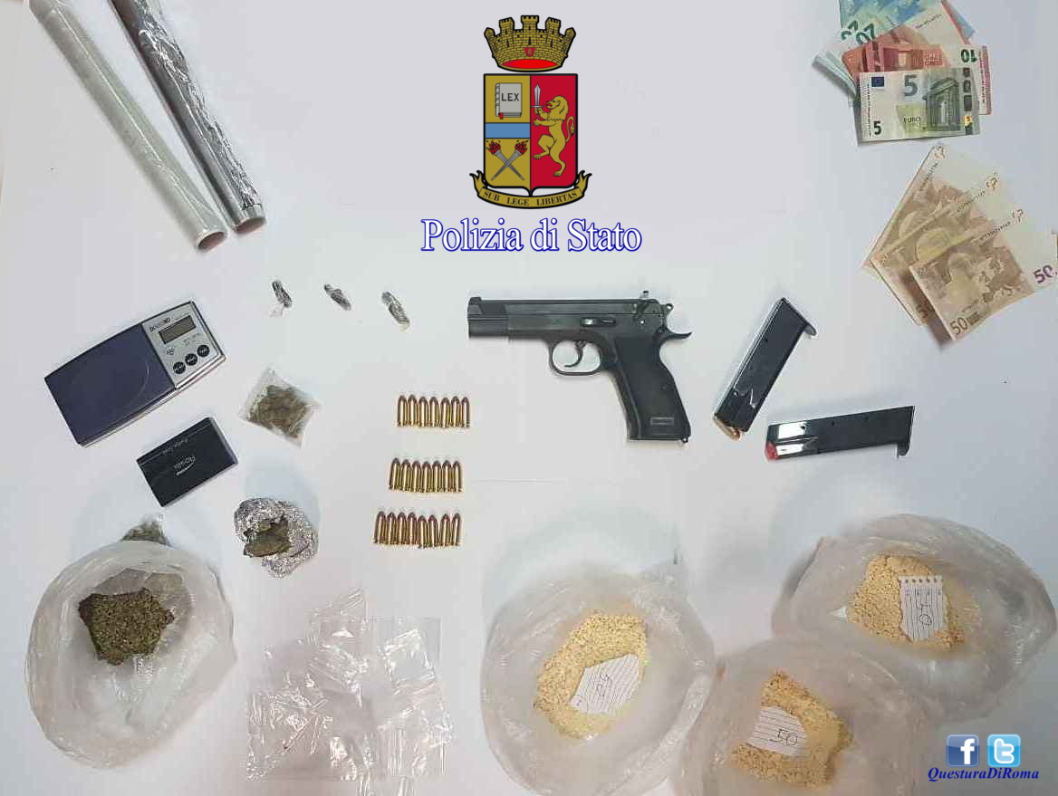 Approfondendo l’attività investigativa, i poliziotti hanno poi trovato in casa del giovane di origine polacche altra droga, 2 bilancini di precisione, materiale per confezionare la sostanza, oltre ad una pistola cal. 9 e 29 cartucce; da accertamenti è emerso che l’arma era stata denunciata rubata nel mese di ottobre dello scorso anno.