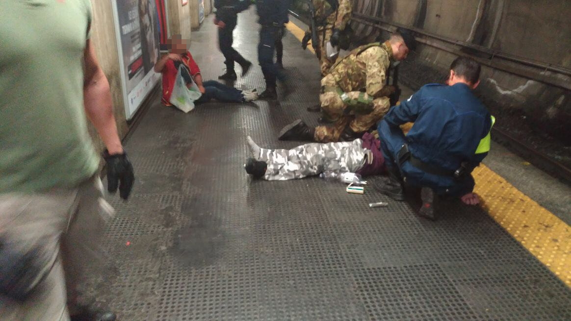 Un uomo, in evidente stato di alterazione alcolica, brandendo un coltello e con un cane al seguito, ha iniziato ad infastidire i passeggeri sulla banchina della metro e poi ha aggredito anche il personale addetto alla sicurezza intervenuto insieme ai militari appartenenti al Raggruppamento Lazio Umbria e Abruzzo dell’operazione “Strade Sicure”.