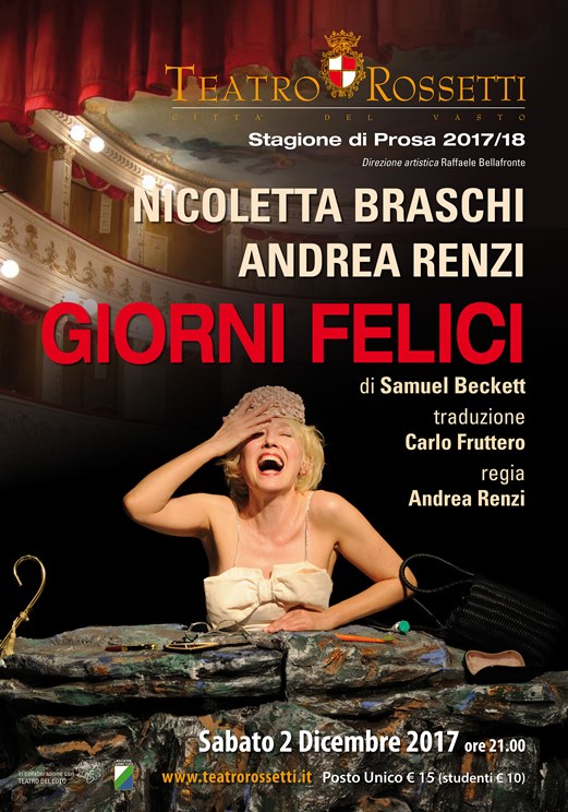 Alle ore 21,00 secondo appuntamento della Stagione di Prosa del Teatro Rossetti di Vasto con un pilastro del teatro del Novecento, «Giorni felici» di Samuel Beckett, che in questo allestimento prodotto da Melampo e Teatro Stabile di Torino ha debuttato nel 2013. È di quegli spettacoli imperdibili.