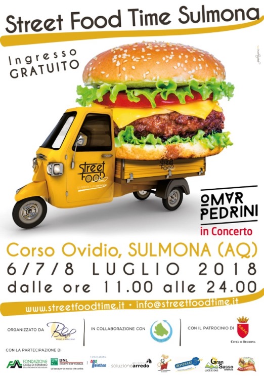 Il tour di “Street Food Time” toccherà nel 2018 molte città italiane ed è felice di essere per la prima edizione a Sulmona.