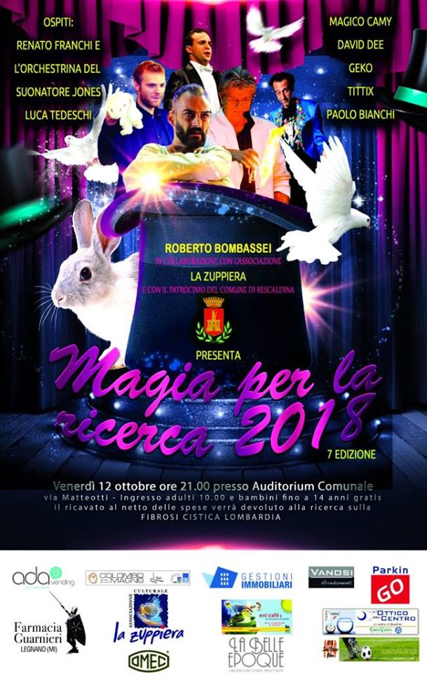 Si terrà venerdì 12 ottobre a Rescaldina presso Auditorium comunale Via matteotti la settima edizione di “MAGIE PER LA RICERCA” il cui fine è la raccolta fondi per la ricerca sulla fibrosi cistica