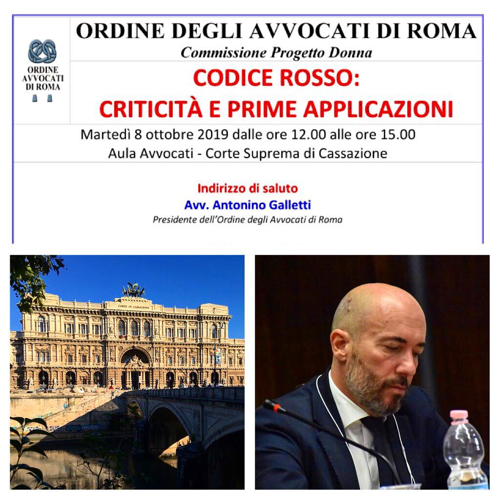 “Codice Rosso: criticità e prime applicazioni”. Questo il titolo del convegno che si terrà il prossimo martedì 8 ottobre, dalle ore 12 alle ore 15, presso l’aula Avvocati della Suprema Corte di Cassazione, a Roma. Un incontro dall’alto valore professionale e formativo, organizzato dalla Commissione Progetto Donna dell’Ordine degli Avvocati di Roma, a cui parteciperanno, tra gli altri, il Giudice del Tribunale Penale di Roma, Valerio de Gioia, l’Avvocato Gian Ettore Gassani e la giornalista Adriana Pannitteri.