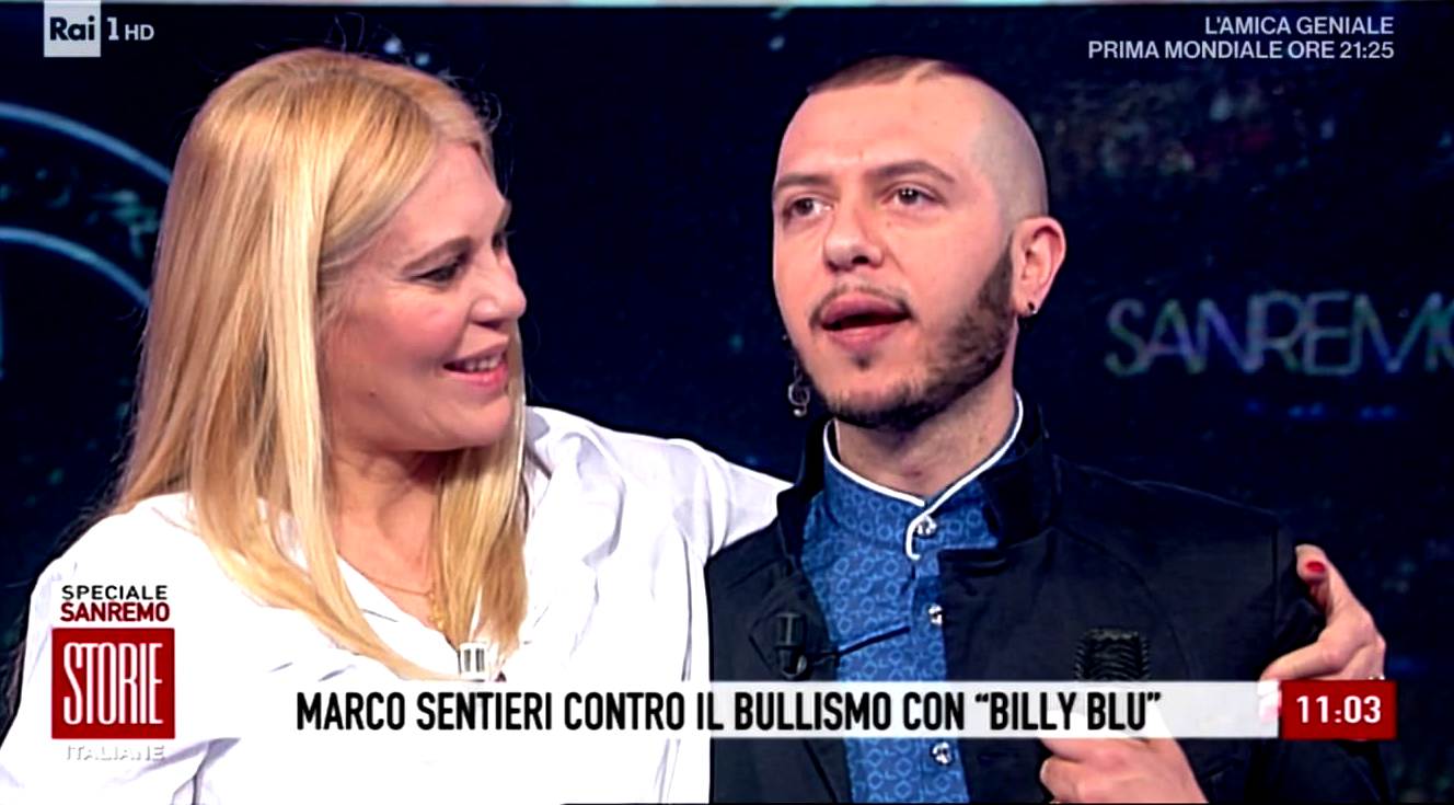 Non appena rientrato dal successo di pubblico e critica sanremese Marco Sentieri è stato invitato su RAI 1 a “Storie Italiane” nella trasmissione di Eleonora Daniele che ha speso parole importanti su Marco e sul suo progetto: “Un grande artista, ha dedicato questa canzone bellissima ad una sua storia, una sua vicenda personale. Tema del bullismo, la canzone l’avete sentita è Billy Blu, è una canzone veramente veramente molto bella e sta vendendo, sta spaccando in radio, tantissimo e sta funzionando davvero con grande successo, molto molto bene“
