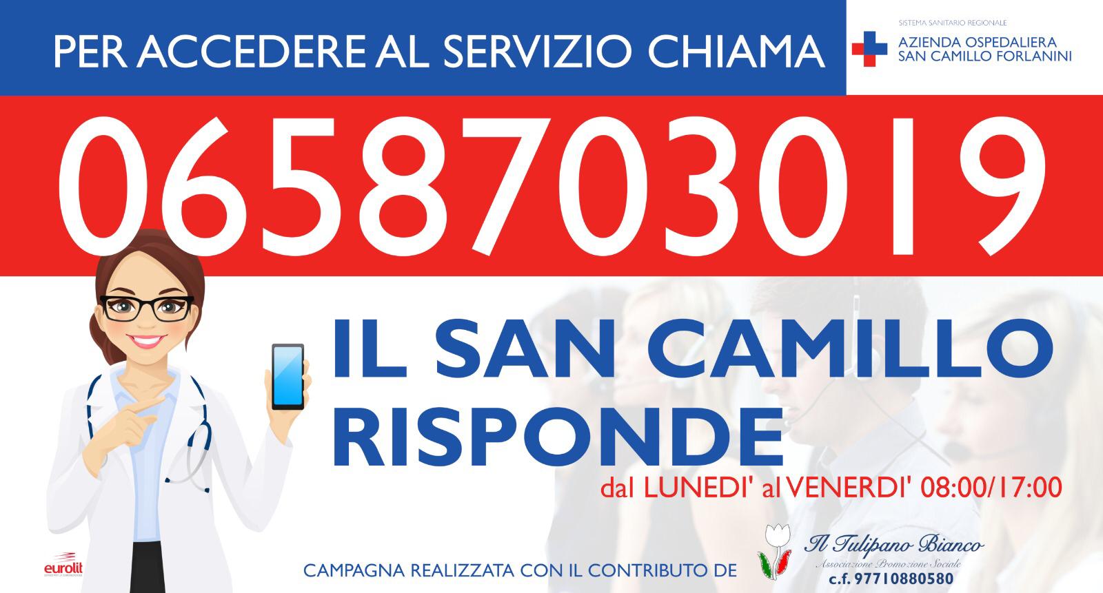 È tutto pronto presso l’Azienda Ospedaliera “San Camillo-Forlanini” per la conferenza di presentazione del progetto “San Camillo risponde”, ideato dall’Azienda ospedaliera “San Camillo-Forlanini”, anche con il contributo de “Il Tulipano Bianco Aps”, che si terrà il prossimo mercoledì 27 maggio, a partire dalle ore 11.30 presso la Direzione generale al piano terra del Padiglione Busi.