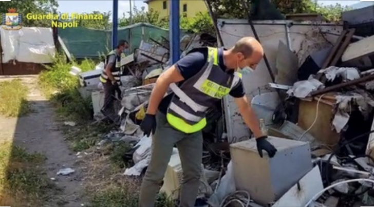 L’ispezione dei finanzieri del gruppo di Nola ha rilevato che si tratta di materiale ferroso pneumatici, elettrodomestici e materiale plastico.