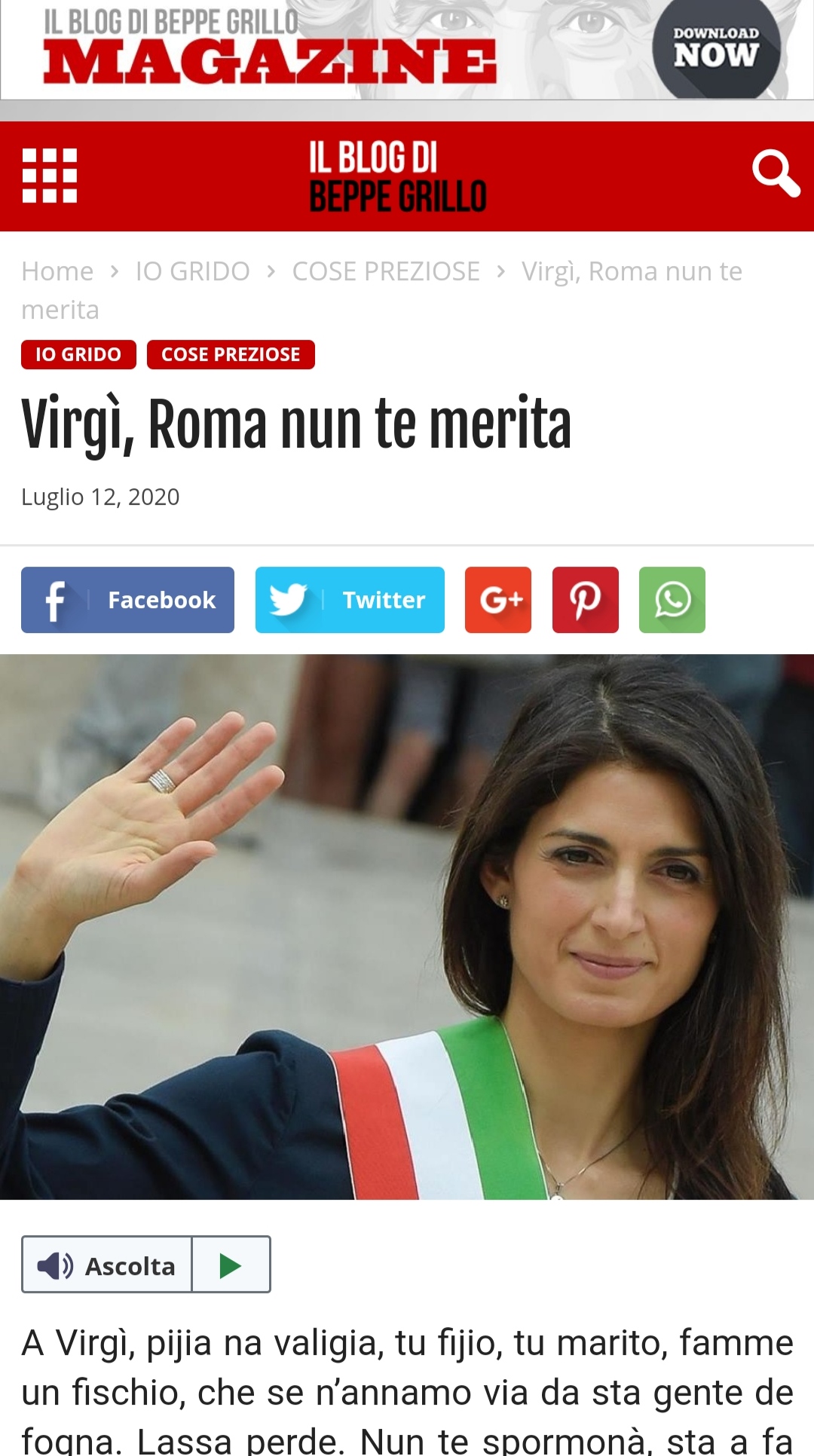 “Come associazione che tutela i cittadini della Capitale d’Italia, reputiamo offensivo e maleducato il sonetto pubblicato sul blog di Beppe Grillo che, come sempre utilizza la provocazione e “l’ironia” per attaccare e insultare chi non è d’accordo con lui. Stavolta le vittime sacrificali sono i cittadini capitolini, offese dalle parole becere di quel sonetto così illogico e fuori luogo. Un modo inutile per difendere la sindaca Raggi, a ben guardare indifendibile per il suo operato molto al di sotto delle aspettative di 4 anni fa: Roma purtroppo è una città degradata, dimenticata e in crisi economico e sociale. Se ne sono accorti tutti, tranne Grillo che adesso farebbe meglio a chiedere scusa ai romani”.