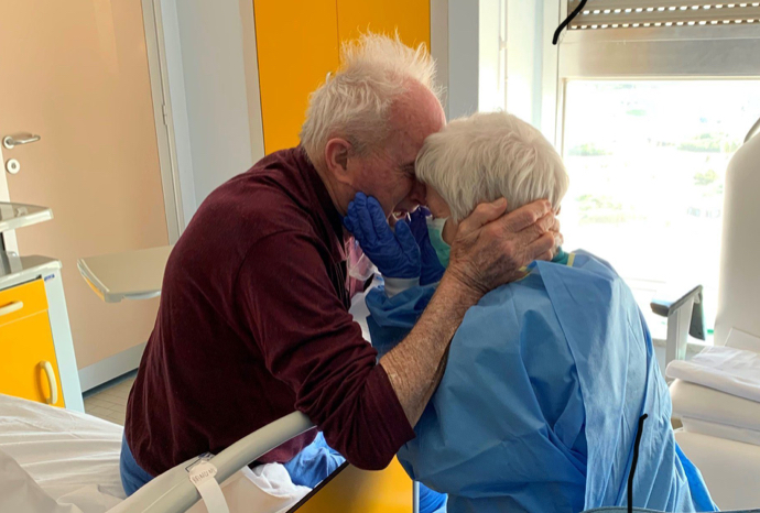 È morta a 74 anni la signora Rosa,protagonista della foto in ospedale insieme a suo marito Giorgio 77 anni, durante la pandemia.