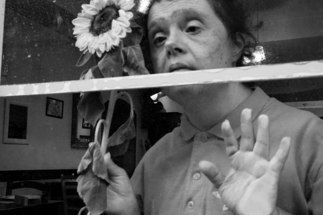 Per due anni questo ambiente intimo ed accogliente, così come i luoghi esterni al locale, hanno rappresentato lo spazio dove fotografare non solo le dinamiche di routine lavorativa, ma i momenti di connivenza, le condivisioni di svago e le dimostrazioni spontanee di affetto. Ed ecco che i ragazzi diventano sinestesie narranti un mondo fatto di poesia dal quale – come i girasoli – traggono energia vitale e verso il quale tendono il loro volto puro.