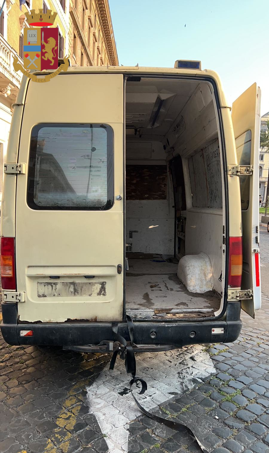 Poco prima delle 4, presso la sala operativa della Questura di Roma, è giunta la segnalazione di un “furto in atto” in via Borgo Vittorio; varie pattuglie sono intervenute, ma è stata un’auto civetta del commissariato Borgo ad “agganciare” un furgone che, con alla guida l’odierno indagato, si stava allontanando. I poliziotti, dopo un breve inseguimento, hanno fermato il mezzo sul lungotevere trovando all’interno 2 piedi di porco, un’ascia e un passamontagna verosimilmente usato durante l’azione delittuosa. Sul gancio traino erano state fissate delle funi fatte con vari pezzi di cinture di sicurezza.