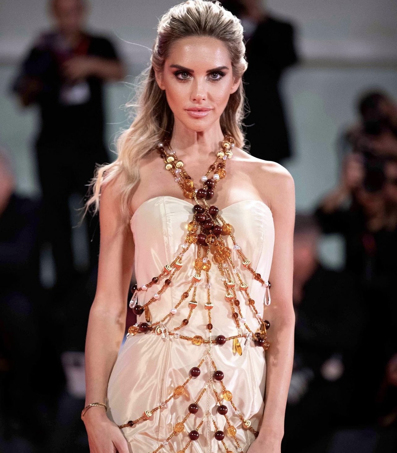 Il Festival di Venezia suscita curiosità anche per gli outfit scelti dai vari protagonisti: Michela si è affidata ancora una volta a Michele Gianbrocano optando per un abito molto lungo di colore scuro.