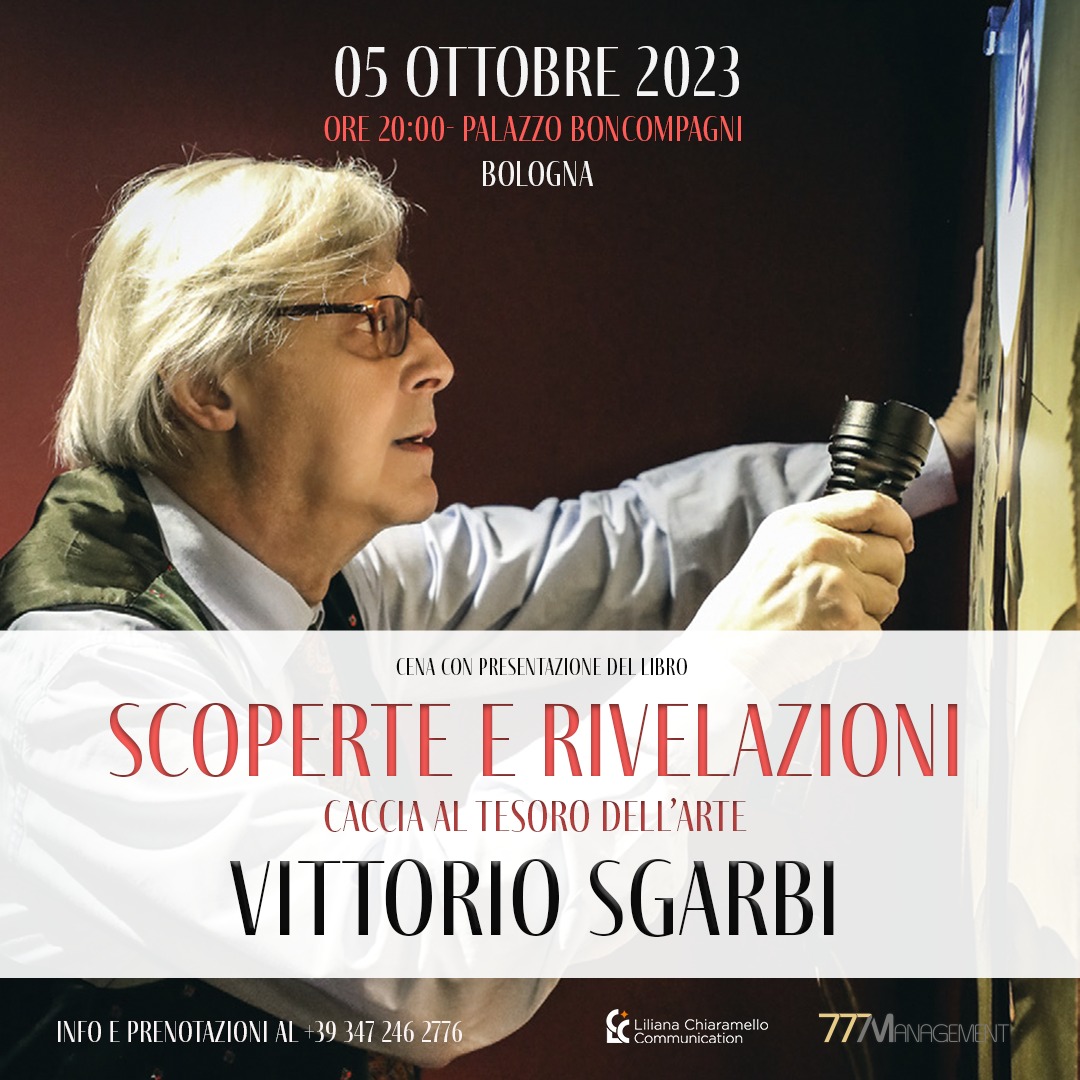 Il Palazzo Boncompagni di Bologna sarà il prestigioso palcoscenico per unevento straordinario che celebra l’arte, la cultura e la scoperta. Il rinomatostorico dell’arte e sottosegretario alla cultura, Vittorio Sgarbi, sarà ilprotagonista principale nella presentazione del suo ultimo capolavoroletterario, “Scoperte e Rivelazioni. Caccia al Tesoro dell’Arte”.