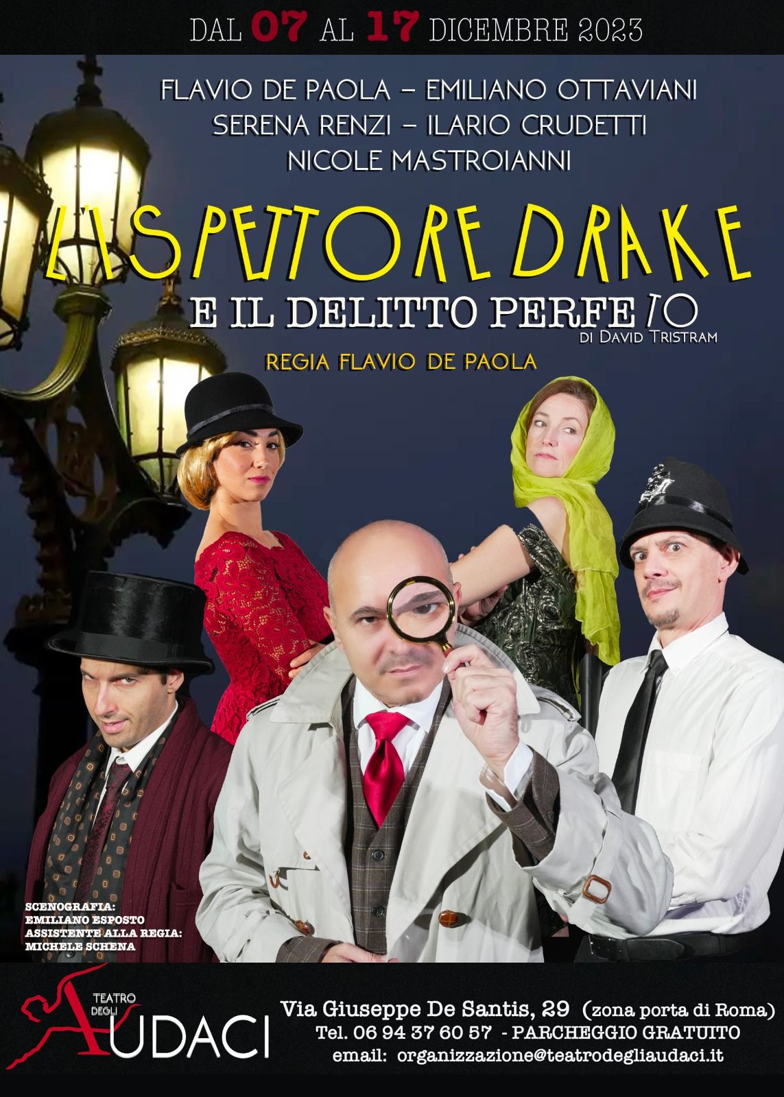 A grande richiesta per la regia di Flavio De Paola torna al teatro degli Audaci “L’ispettore Drake e il delitto perfeto” l’esilarante commedia di David Tristram con Flavio De Paola, Emiliano Ottaviani, Serena Renzi, Ilario Crudetti e Nicole Mastorianni a partire da giovedì 7 dicembre alle ore 21:00!