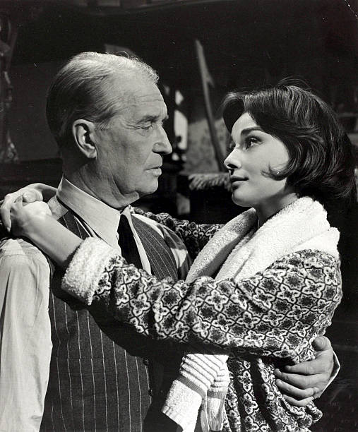 Stage and Screen, Personalities, pic: 1950's, Actress Audrey Hepburn pictured with French star Maurice Chevalier, Audrey Hepburn, (1929-1993) born in Brussels, a truly international star from a cosmopolitan background, starred in many films, eg, "My Fair Lady" and "Breakfast at Tiffany's" (Photo by Popperfoto via Getty Images/Getty Images)