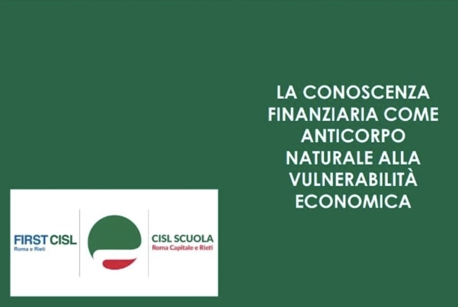 In tale contesto prosegue anche per l’anno 2023/24 il percorso di formazione erogato in sinergia tra la CISL Scuola di Roma Capitale e Rieti e la First CISL di Roma e Rieti, dedicato agli studenti delle scuole superiori della Capitale, dal titolo “LA CONOSCENZA FINANZIARIA COME ANTICORPO NATURALE ALLA VULNERABILITÀ ECONOMICA”
