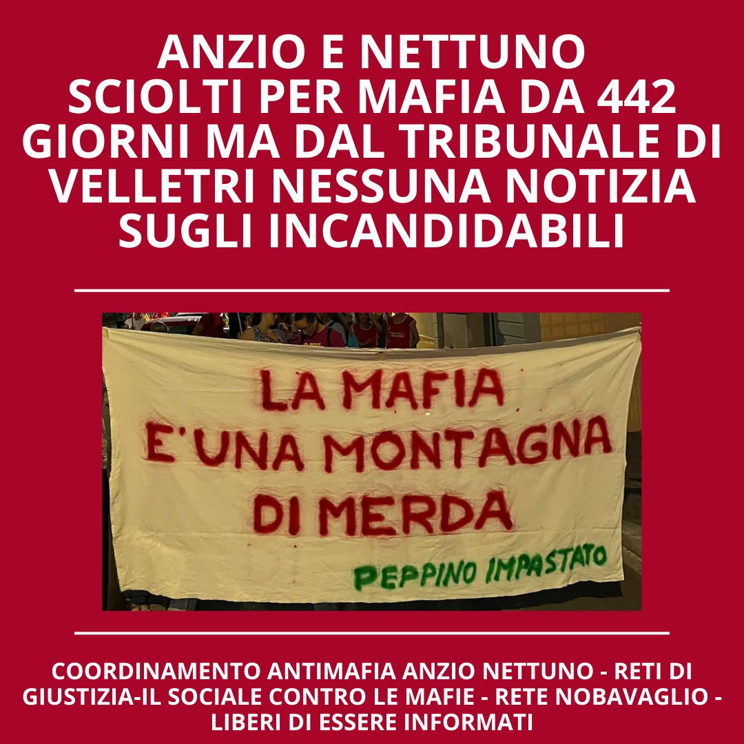 Il Consiglio dei ministri, il 22 novembre 2023, ha sciolto i Consigli comunali di Anzio e Nettuno per condizionamento mafioso nonostante ciò dal tribunale di Velletri non si ha alcuna notizia sulle richieste di incandidabilità presentate per gli ex amministratori.