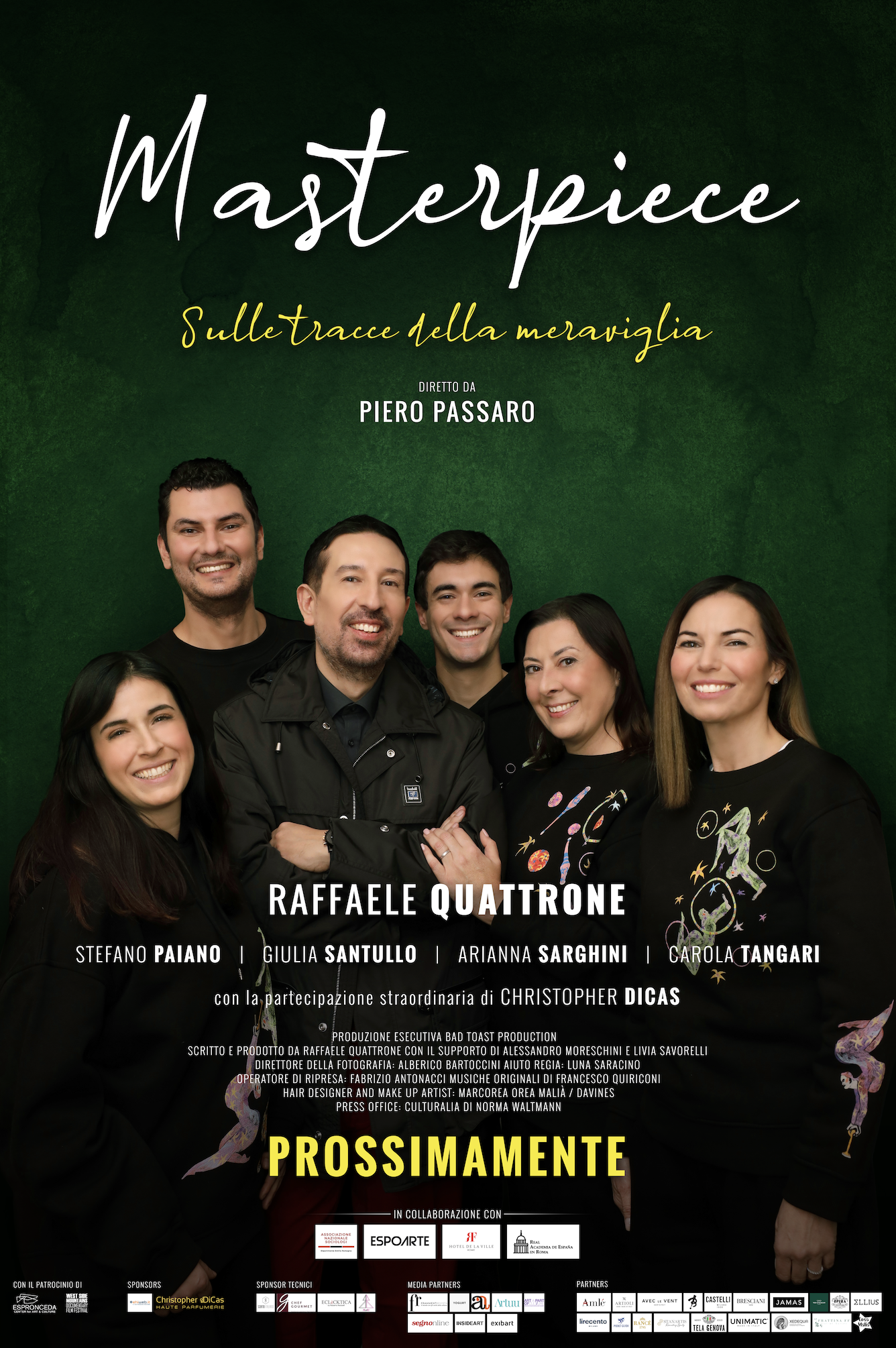 Attraverso un linguaggio semplice e coinvolgente, la Docu-serie si presenta come un viaggio alla scoperta dell’arte contemporanea internazionale con il coinvolgimento di numerosi importanti artisti provenienti da tutto il mondo quali Shirin Neshat, Imran Qureshi, Bertozzi & Casoni, Michelangelo Pistoletto, Vanessa Beecroft, Jeff Koons, Alberto Di Fabio, Mona Hatoum, Marinella Senatore e Anri Sala,che hanno collaborato direttamente con Quattrone alla scrittura degli episodi. Nato in piena pandemia, in un periodo nel quale era vietato spostarsi, “MASTERPIECE. Sulle tracce della meraviglia” è un’esplorazione del panorama artistico contemporaneo più recente, con i piedi piantati in Italia ed in particolare a Roma in quanto realtà ancora attuali, capaci di influenzare presente e futuro.