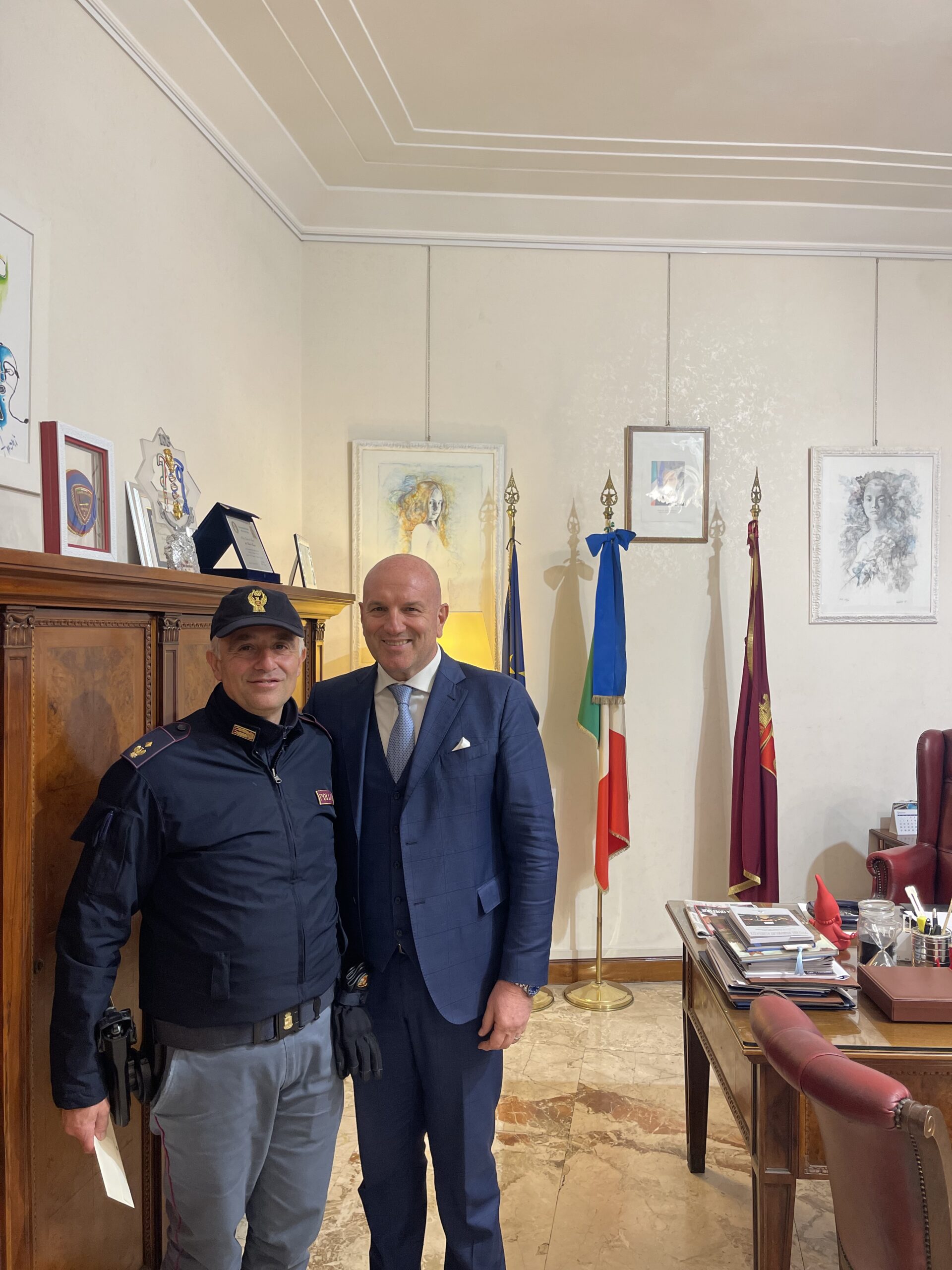 Quel giorno, aveva voluto ripercorrere insieme a loro le stesse strade che vigila di notte con i suoi colleghi, ma, per una volta, senza indossare la “giubba blu”. In ufficio, però, non ha dimenticato quell’ “occhio del poliziotto” che il Questore di Roma, alla vigilia del primo evento giubilare, aveva raccomandato di tenere sempre bene aperto.