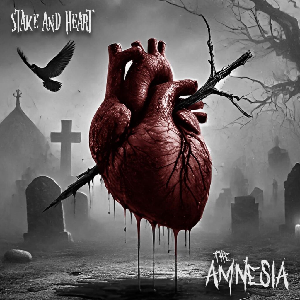 “Stake and Heart” è stato concepito come ponte narrativo tra l’intermezzo e la conclusione dell’intero disco, che racconta una storia avvincente e gotica basata sulle vicende di un vampiro. Il singolo esplora temi di tradimento sentimentale e morale con sonorità che mescolano malinconia e potenza emotiva, riflettendo il confronto tra il protagonista e Lady V, l’antagonista. The Amnesia porta con sé un originale mix di influenze musicali che spaziano dal punk contemporaneo al rock classico. Il sound, che richiama artisti come My Chemical Romance, Ghost, Paramore, Santana, Led Zeppelin, Sistem Of A Down, si distingue per le melodie oscure, i testi profondi e arrangiamenti che uniscono energia e introspezione. Ogni membro della band contribuisce in maniera impeccabile con il proprio talento al risultato finale: Luca Bevilacqua alla voce solista, Mattia Crivellini alla chitarra ritmica, Simone Stanzani alla chitarra solista, Lorenzo Magnani al basso e Valentino Biagini alla batteria.