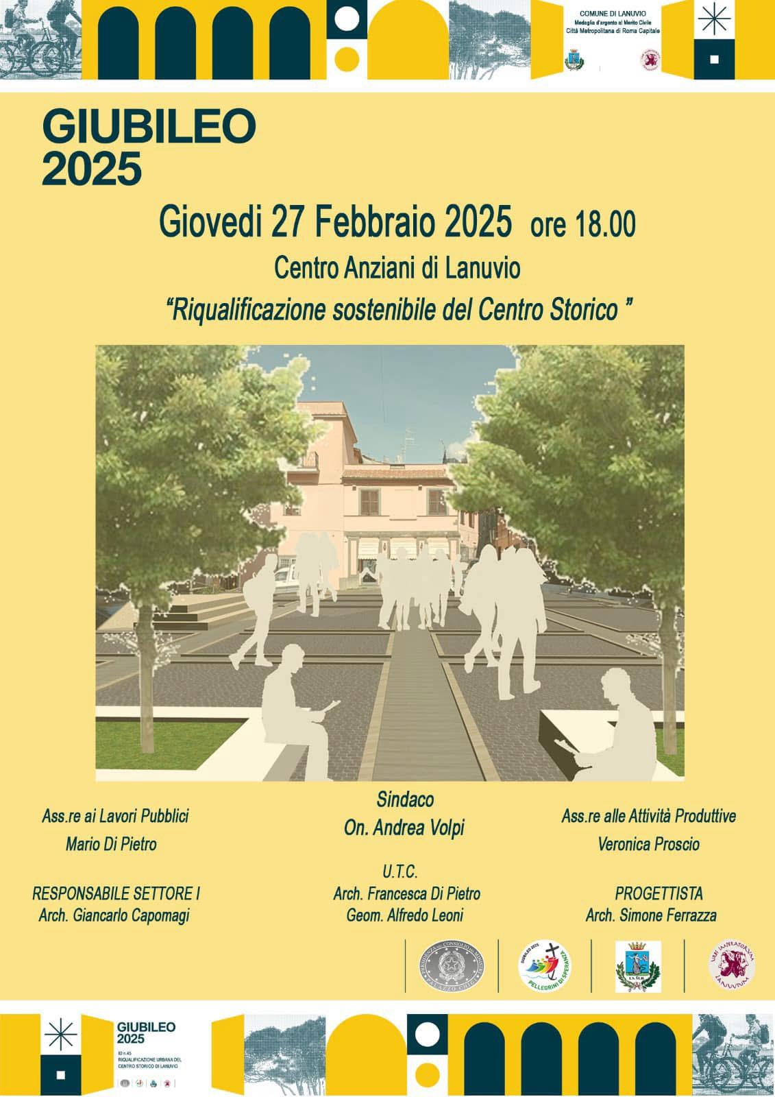L’appuntamento è per giovedì 27 febbraio, alle ore 18:00 presso il Centro Anziani di Lanuvio, Piazza della Maddalena, 2. All’evento interverranno il Sindaco di Lanuvio On. Andrea Volpi, l’Ass. ai lavori pubblici Mario Di Pietro, l’Ass. alle attività produttive Veronica Proscio, il responsabile di settore Arch. Giancarlo Capomagi, l’ufficio tecnico comunale nelle persone dell’Arch. Francesca Di Pietro e del Geom. Alfredo Leoni e il progettista Arch. Simone Ferrazza.