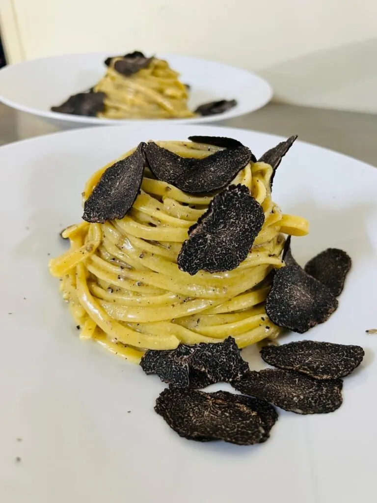 «Le fettuccine al tartufo nero pregiato, senza dubbio. La pasta tirata a mano, il burro che si scioglie, il tartufo che sprigiona tutto il suo profumo… è un piatto che scalda, che coccola.