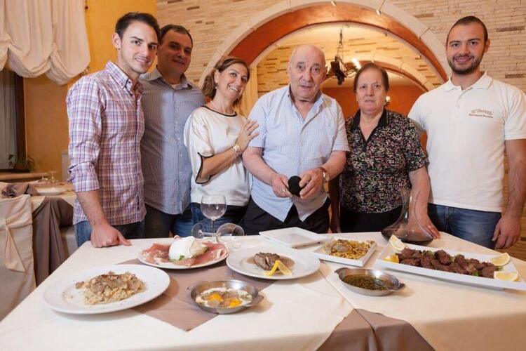 «Tutto. Siamo in sette: io, mia moglie, i miei figli Alessio e Giuseppe con le loro mogli, e naturalmente i miei cani da tartufo. Alessio è lo chef, Giuseppe dirige la sala. Lavorare insieme ci rende forti. E credimi: il calore umano, d’inverno, si sente ancora di più. Chi entra da noi trova una casa, non un tavolo.»