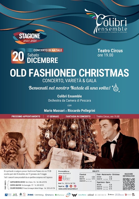 Old Fashioned Christmas unisce il format del concerto al fascino del varietà di una volta con la grande musica americana del Novecento e i testi di Andrea Gallo. Oltre alle raffinate composizioni di Leroy Anderson, le emozioni dei film di Natale come “Mamma ho perso l’aereo”, le canzoni indimenticabili rese celebri da Frank Sinatra, Ella Fitzgerald, Dean Martin. Non mancheranno i classici della tradizione natalizia, per scaldare i cuori e risvegliare i ricordi più belli. Sul palco gli attori Mario Massari e Riccardo Pellegrini, ma a loro si aggiungeranno altri artisti, comici, ballerini di swing, tip-tap tante sorprese, in un vero e proprio varietà, come quelli che si guardavano in bianco e nero, tutti stretti intorno al televisore.